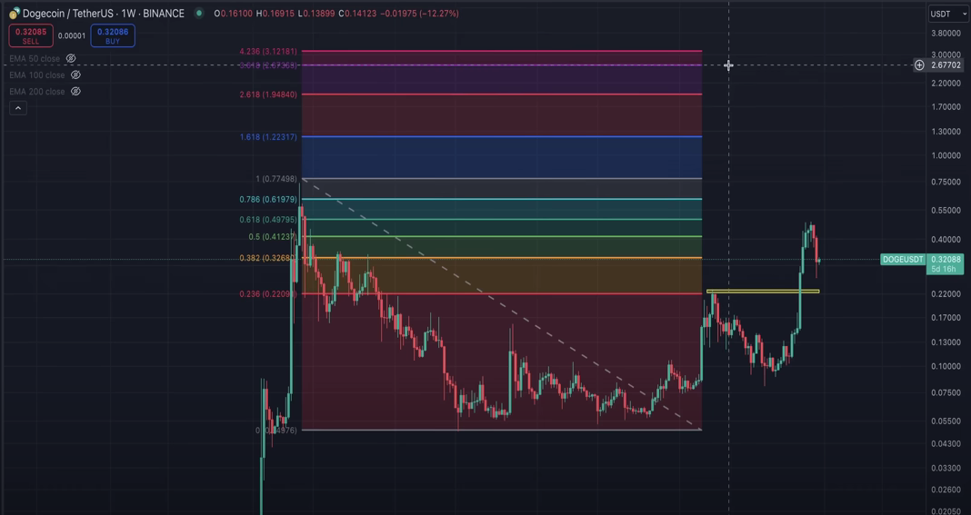 King of meme coins, Dogecoin is expected to enjoy another crazy run. Based on present levels, Davis sees possible price objectives ranging from $1.20 to $2.50 and perhaps $3. He does, however, warn that the flow of rival meme coins washing the market may dilute the performance of Dogecoin.