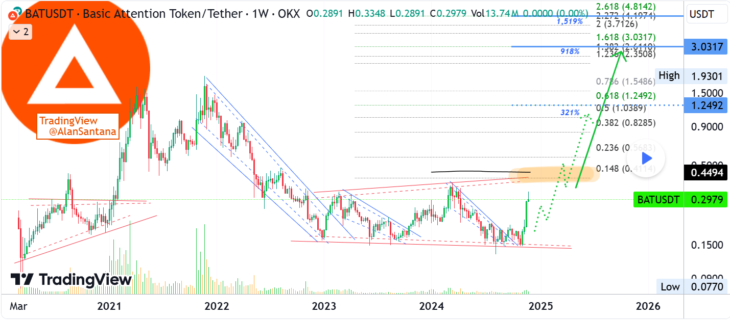 Basic Attention Token (BAT) is attracting interest as analysts foresee a notable bullish future in its trajectory. Popular crypto analyst Alan Santana on TradingView highlights that BAT has shown encouraging indicators.