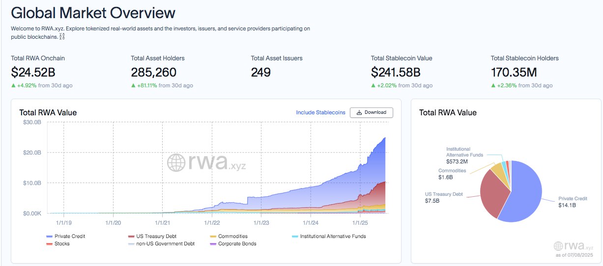 Die Verschiebung erfolgt inmitten einer zunehmenden Dynamik im gesamten RWA-Sektor, dessen Onchain-Gesamtwert bis zum 8. Juli auf 24,52 Milliarden US-Dollar anstieg. Der breitere Anstieg der tokenisierten Vermögenswerte deutet auf ein zunehmendes Interesse von Institutionen und Entwicklern hin, da neuere Blockchains wie Aptos gegenüber bereits länger etablierten Netzwerken an Zugkraft gewinnen.
