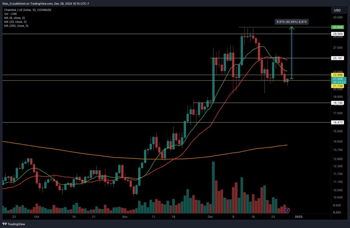 Inmitten dieser riesigen Walakkumulation bleibt die allgemeine Marktstimmung rund um LINK recht optimistisch mit starken Rallye-Erwartungen im Januar 2025. Wie von Crypto News Flash berichtet, glauben einige Analysten auch, dass der LINK-Kurs bis Ende nächsten Jahres bis auf 80 Dollar steigen kann.