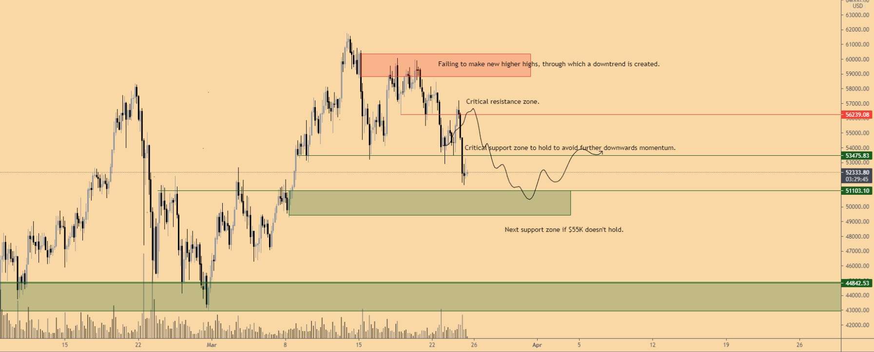 - El precio del Bitcoin ha caído por debajo del soporte de 53.000 dólares y ahora podría probar la región entre 49.000 y 51.200 dólares.