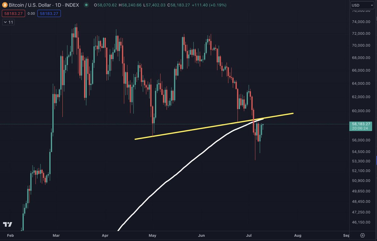 Benjamin Cowen, fundador del boletín «Into The Cryptoverse», señala que desde un punto de vista técnico, Bitcoin se enfrenta a una resistencia a corto plazo en 59.000 dólares, marcada por la media móvil simple de 200 días, según la actualización de CNF.