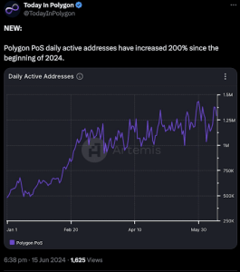 En el lado positivo, las métricas en la cadena muestran signos prometedores para MATIC. El crecimiento de la red ha aumentado significativamente, lo que indica un número creciente de nuevas direcciones que acumulan interés en MATIC. Este aumento sugiere que los nuevos usuarios están dispuestos a comprar MATIC a los precios reducidos actuales.