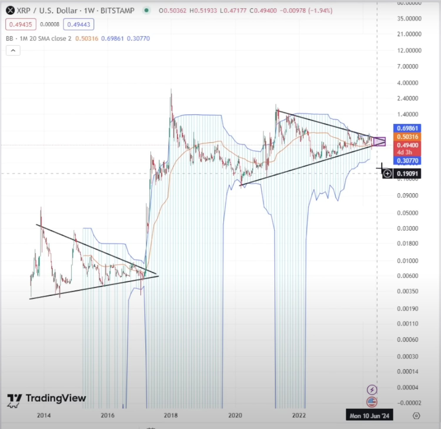 Estas Bandas de Bollinger solo se han apretado tres veces en la historia de XRP, y causó enormes carreras exponenciales. ¿Es una coincidencia que esté sucediendo en el mismo momento exacto en que estamos llegando al final de este patrón de consolidación; al mismo tiempo que estamos esperando el final del caso Ripple/SEC?