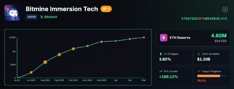 - La société détient désormais 4,66 millions d’ETH, atteignant 76 % de son objectif final de réserve.