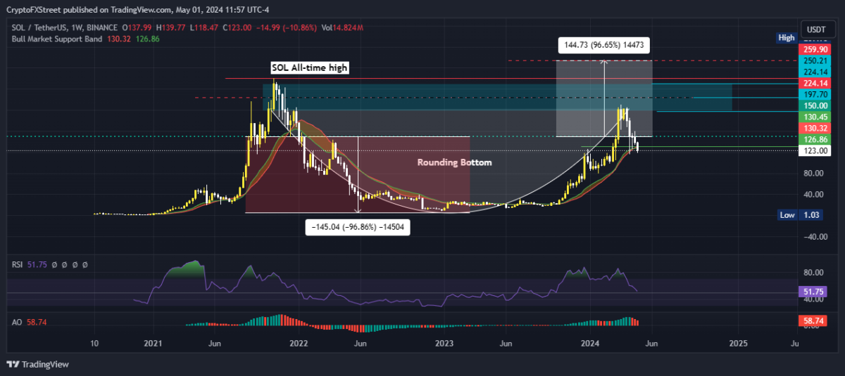 The Solana price has bounced back significantly from the lows of $120. As of press time, SOL is trading 11.24% up at a price of $133, per the Crypto News Flash report. If the Solana price manages a candlestick close above the neckline of the rounding bottom pattern, currently situated at $126.86, major long positions will be initiated.