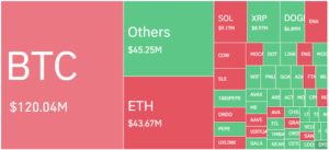 - Kapitalisasi pasar Bitcoin mencapai US$2,08 triliun, dengan likuidasi sebesar US$119 juta dan dominasi naik menjadi 57,49%, yang mengindikasikan potensi pertumbuhan hingga US$120.000.