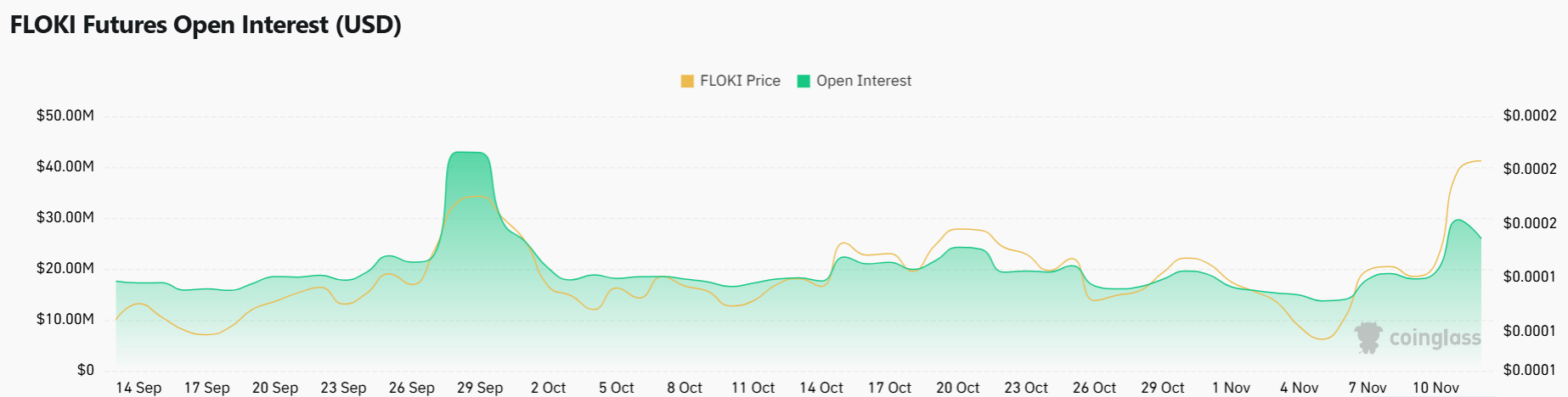 Selain itu, data CoinGlass baru-baru ini semakin menegaskan laju eksplosif FLOKI. Sementara open interest tumbuh 5,61% menjadi US$29,47 juta, volume perdagangan naik 20,73% menjadi US$330,62 juta. Untuk FLOKI, OKX, Binance, dan CoinEx telah menyaksikan volume perdagangan terbesar – US$208,17 juta, US$41,86 juta, dan US$40,56 juta, masing-masing.