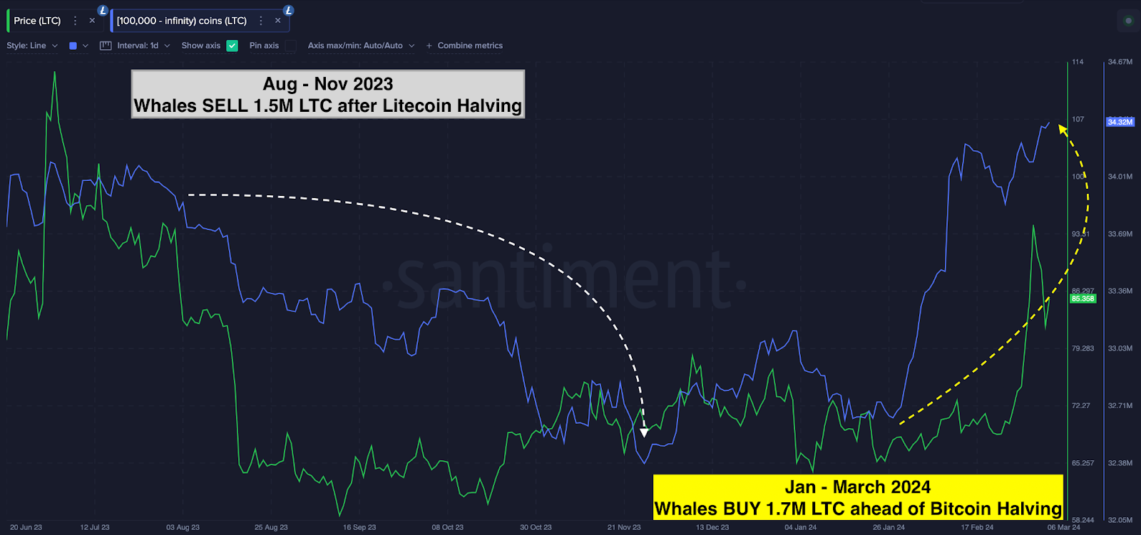 As the chart from Santiment below shows, the accumulation by these whales has been the deciding factor in Litecoin’s momentum change.