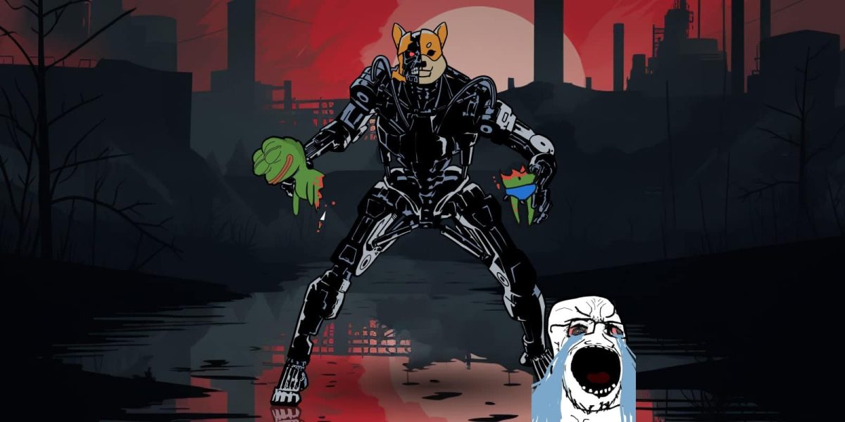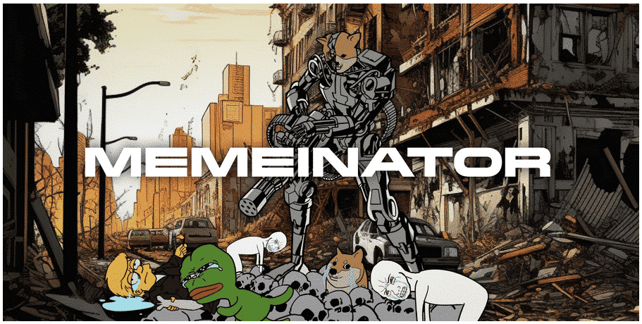 Memeinator will feature a game called Meme Warfare, where players can hunt down weak meme coin rivals in a no-holds-barred shoot-em-up within a digital arena. The game’s AI web scraping tool scans the internet for old and new meme coins to feed into Meme Warfare as characters for Memeinator to destroy.