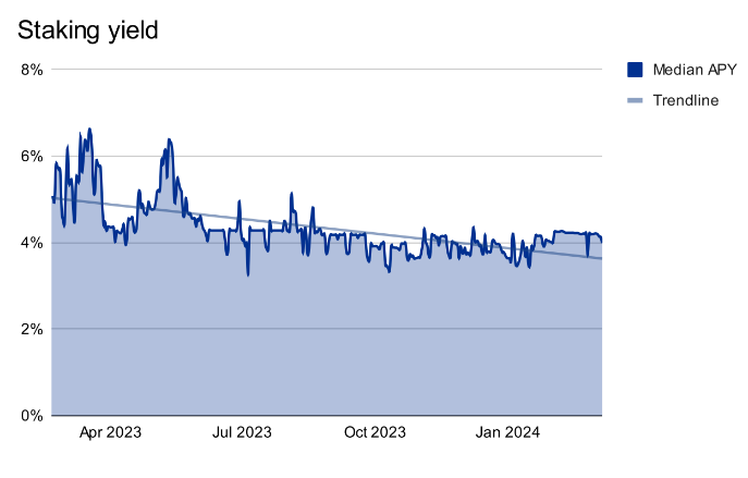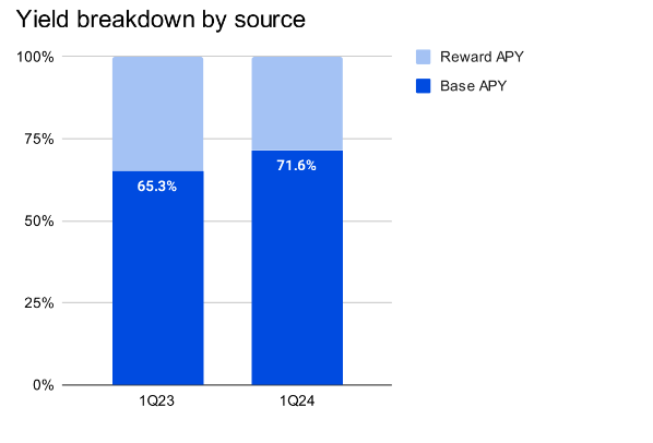 Despite recent setbacks, the DeFi market is witnessing an upsurge in confidence and liquidity. After rising gradually from $26.5 billion in the third quarter of 2023 to $59.7 billion in the first quarter of 2024, the TVL in yield-generating DeFi protocols has grown significantly. This increasing trend indicates a revival of interest in and investment in the DeFi space, indicating a sense of optimism among participants.
