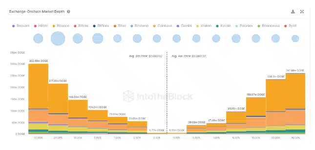 Over the last 24 hours, DOGE trading volume has surged by 64.64 percent across different exchanges. Concurrently, insights from IntoTheBlock’s Order Books metrics shed light on the ongoing dynamics between bulls and bears. Analysis of the trading books from 14 crypto exchanges monitored by IntoTheBlock suggests that, at present, the bulls appear to hold the advantage in this power struggle.
