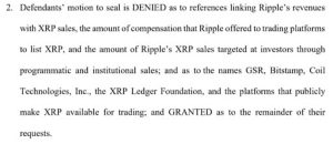 However, the judge ruled that the SEC can redact the names and personal information of people mentioned in Hinman’s documents. Additionally, Ripple lost a motion requesting the judge to seal information regarding XRP programmatic sales and the revenue the company made.