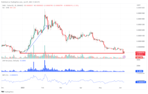Following the recent market-wide crash triggered by news of the US Securities and Exchange Commission (SEC) filing a lawsuit against Binance and Coinbase, the price of Shiba Inu has declined over the past 24 hours. By press time, Shiba Inu’s price is $0.00000805, a 0.23% price increase over the last 24 hours but a decline of 6.04% over the past week.