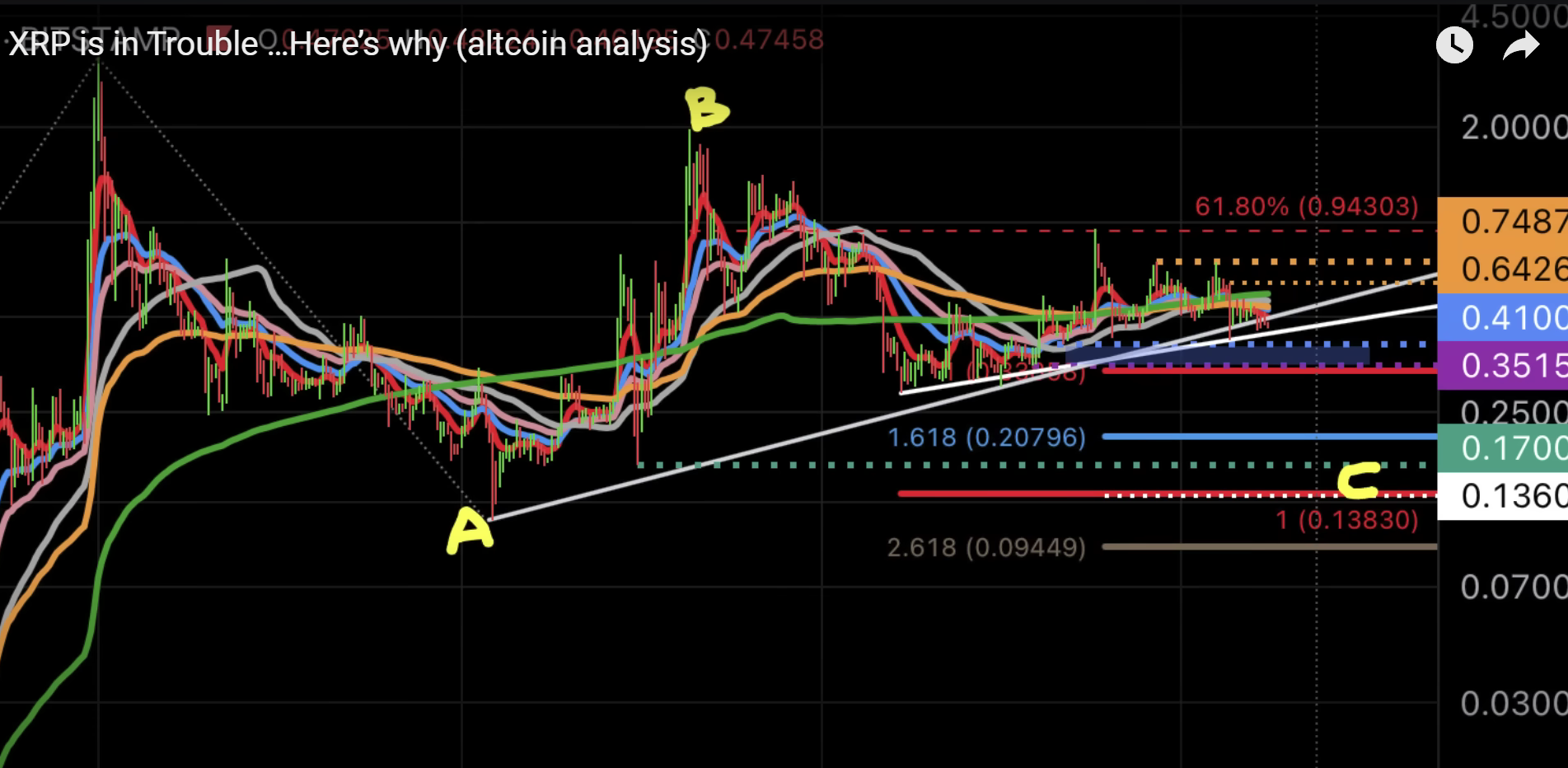 Rastani said in a YouTube video that Wave C of his Elliot Wave Theory research would see XRP fall below $0.13 or perhaps lower. He pointed out that this downturn is almost 100% lower than Wave B and is a similar corrective action to Wave A from 2020.